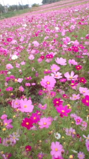 遠くから見てもわかるほどの広大なコスモス畑がありました。。