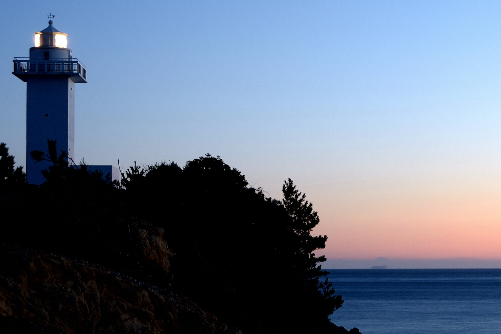 安乗埼灯台と富士山 (志摩市阿児町安乗灯台公園)