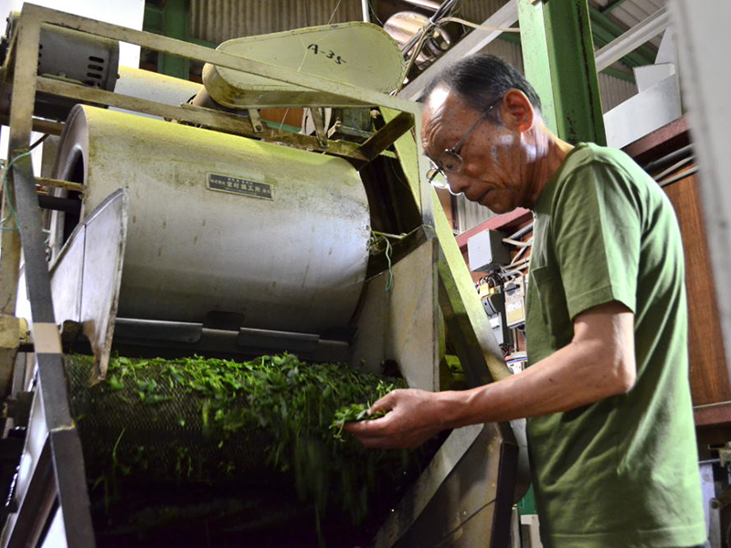 でも工場では真剣な眼差しで茶葉の仕上がりを目で見て手触りと