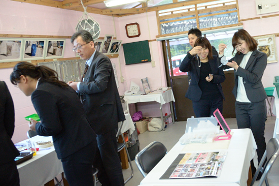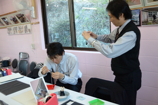 全員が完成するのを待ち、次に真珠工場の見学へと続きます。
